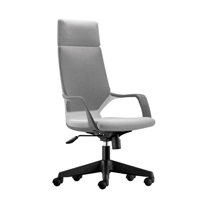 高背主管椅:聚丙烯注塑成型頭枕、椅背及椅座,固定灰色扶手, 兩檔鎖定中央傾仰機(jī)關(guān), 高密度聚氨酯PU定型綿坐墊 ,韓國(guó)三弘汽壓升降調(diào)節(jié),尼龍注塑成型五星腳及腳輪  。