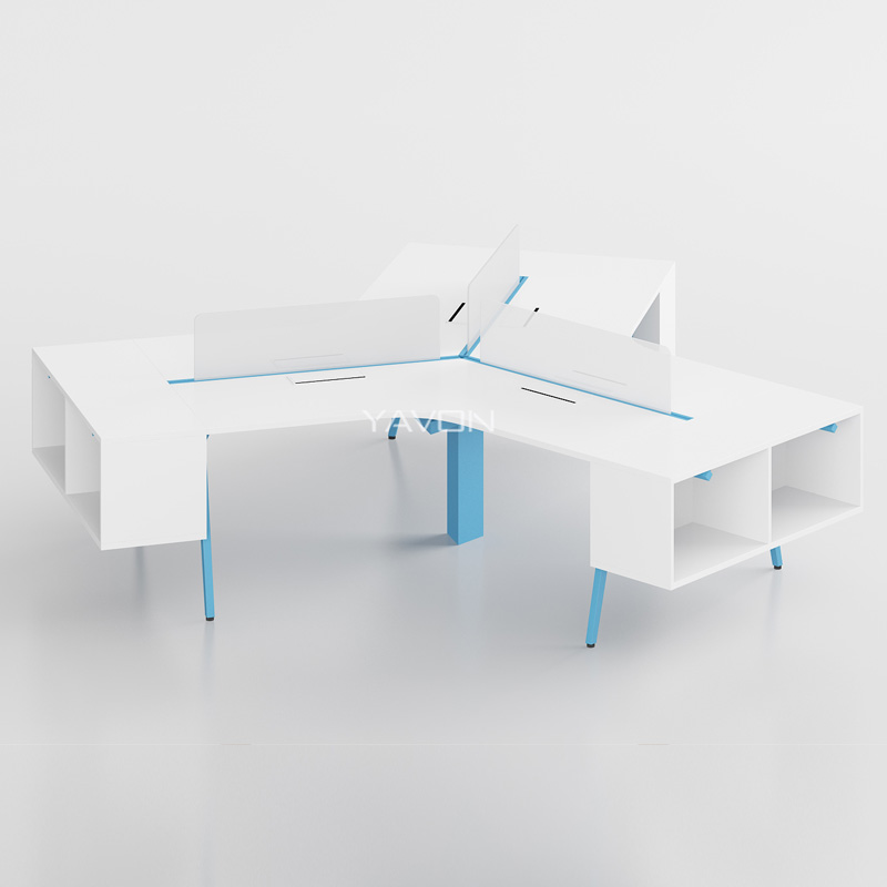 職員辦公桌Y人字位, EO級環(huán)保板材 , 人字型工位活動空間大,桌面面積寬敞。顏色活潑,款式極具現(xiàn)代化,配模塊化收納空間,減少桌面的占有率,活動空間更大。整體外觀設計輕松靈活。